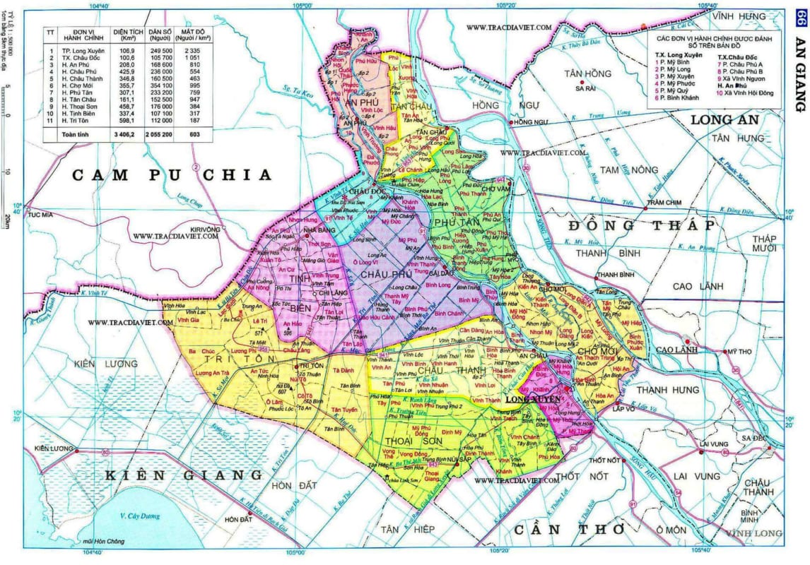 Bản đồ An Giang hay bản đồ hành chính các huyện, xã, Thành phố tại tỉnh giúp bạn tra cứu thông tin về vị trí tiếp giáp, ranh giới, …