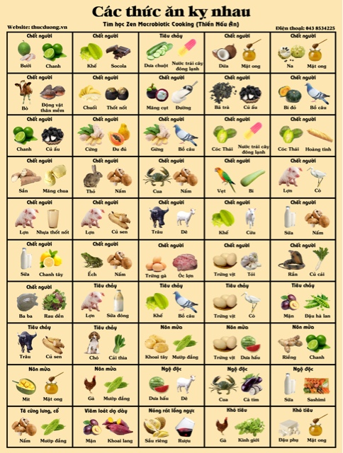 Trứng gà và sữa đậu nành · Củ cải và quýt – thức ăn kỵ nhau · Quả hồng và khoai lang · Sữa bò và chocolate · Quýt và sữa bò · Uống rượu với cà rốt · Các loại quả …