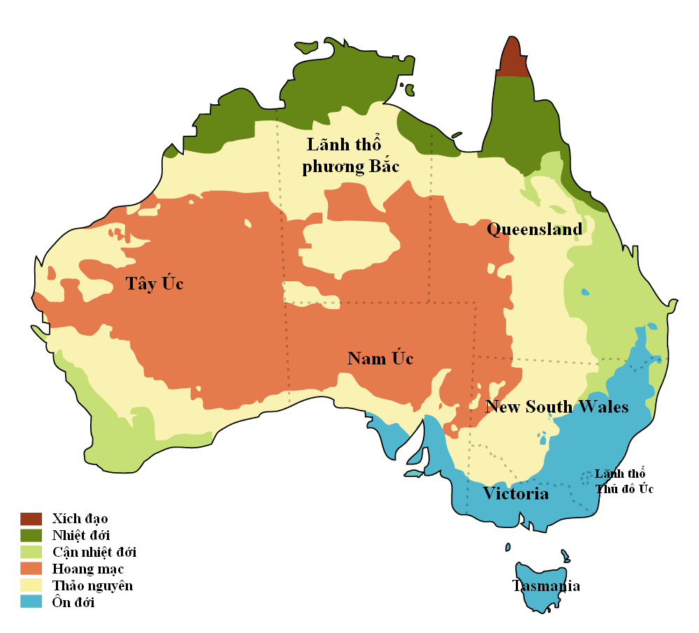 Úc hay Australia là một quốc gia bao gồm đại lục châu Úc, đảo Tasmania, và nhiều đảo nhỏ … Bản đồ nước Úc, chia theo Bang và Vùng lãnh thổ.
