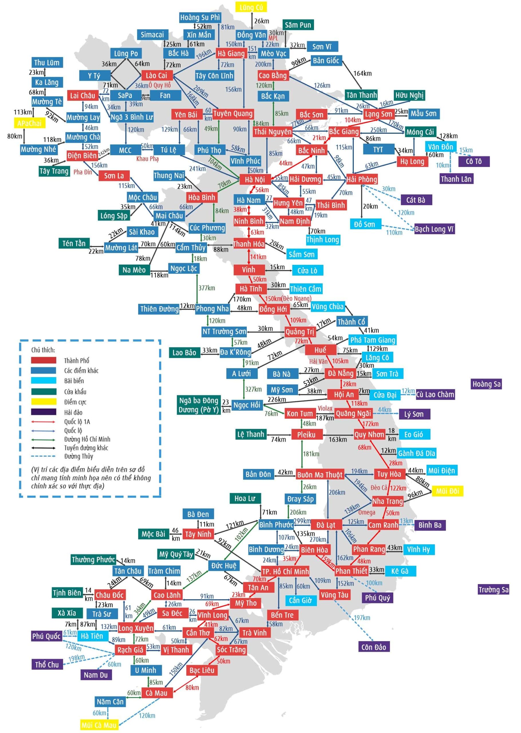 Bài này bao gồm tuyến nổi tiếng và Infographic sơ đồ điểm phượt Việt Nam. Đây là 2 sơ đồ theo Địa Ốc Thông Thái …