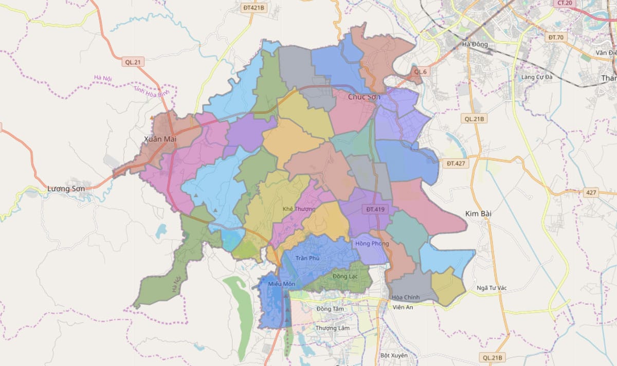 thể hiện ranh giới của 30 quận, huyện, thị xã có đính kèm thêm nhiều dữ liệu kinh tế, xã hội, địa danh, giao thông, …