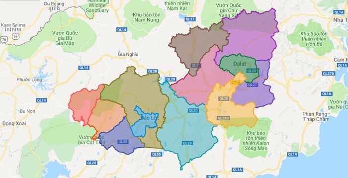 bản đồ hành chính tỉnh lâm đồng mới nhất