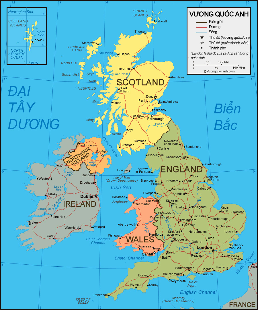 Bản đồ hành chính … Vị trí Vương quốc Anh: Vương quốc Anh nằm ở phía tây châu Âu, bao gồm nước Anh, Scotland, xứ Wales và Bắc Ireland. Nó giáp với Đại Tây Dương …
