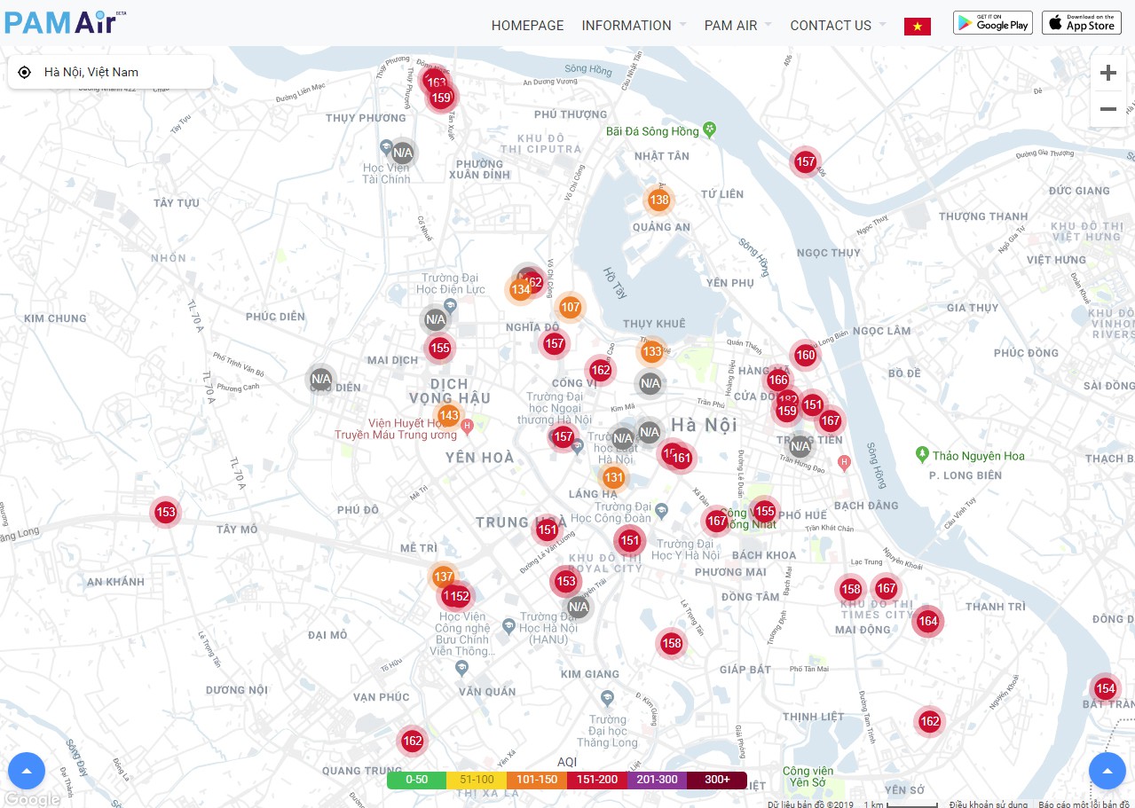 Hà Nội: Cần thực hiện đồng bộ các biện pháp kiểm soát ô nhiễm môi … Trên bản đồ quan trắc chỉ số chất lượng không khí của ứng dụng PAM Air …