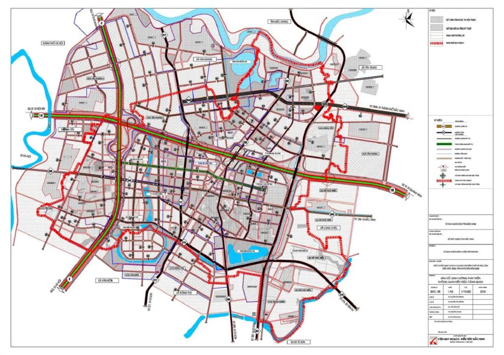 sử dụng đất huyện (Bắc Ninh) cập nhật mới nhất bao gồm các công trình dân dụng, cơ quan, công nghiệp, hạ tầng giao thông.