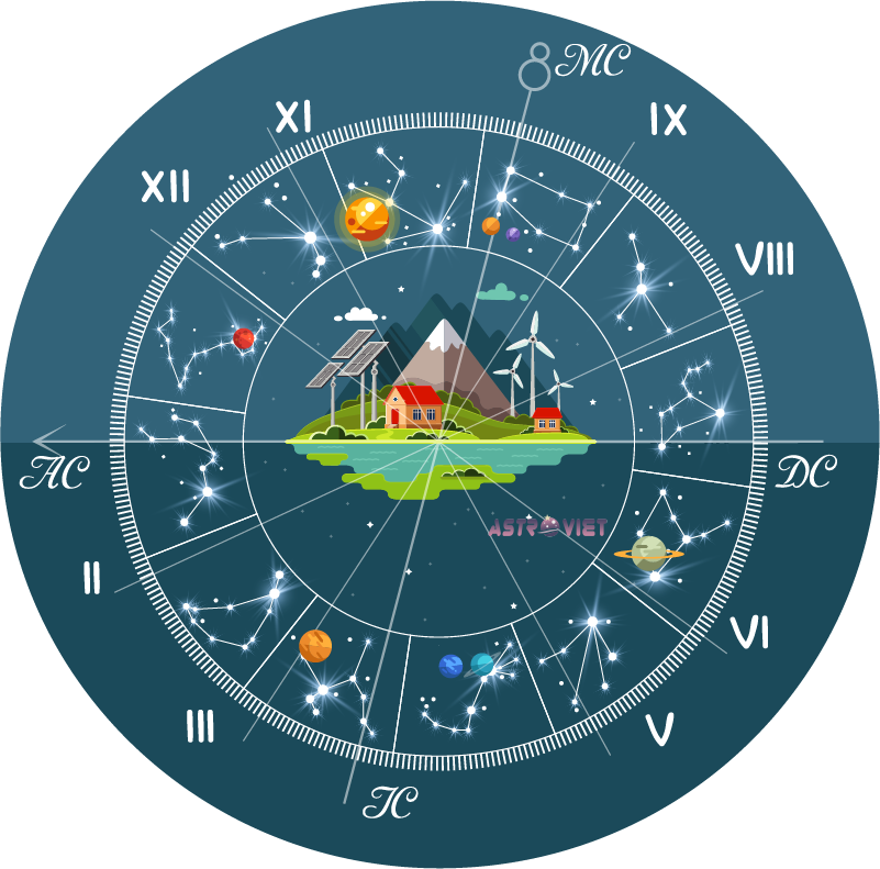 Với các thông tin này, chúng tôi sẽ tạo biểu đồ chiêm tinh hay (natal chart hay birth chart). Biểu đồ này sẽ chứa vị trí của các hành tinh như …