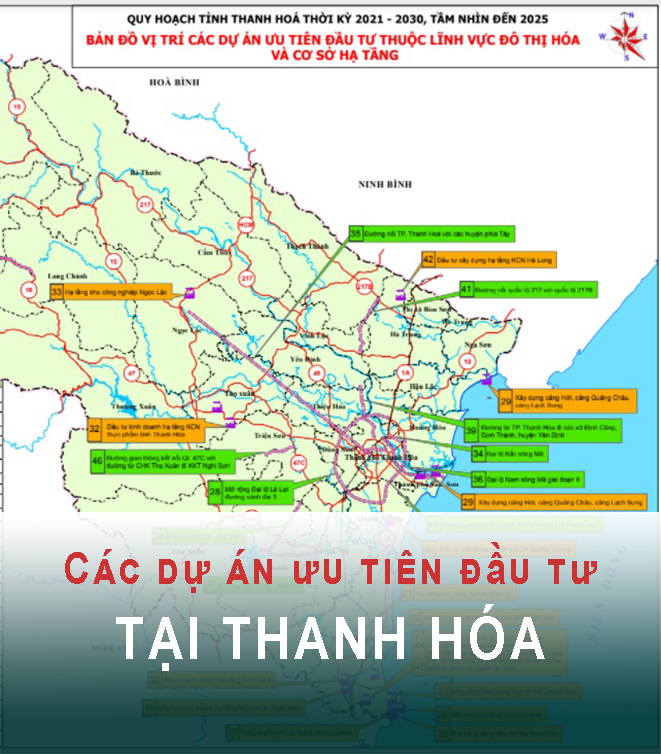 Bản đồ các dự án ưu tiên xây dựng đô thị tại Thanh Hóa năm trong quy hoạch tỉnh Thanh Hóa giai đoạn 2021 -2030 tầm nhìn đến 2050.