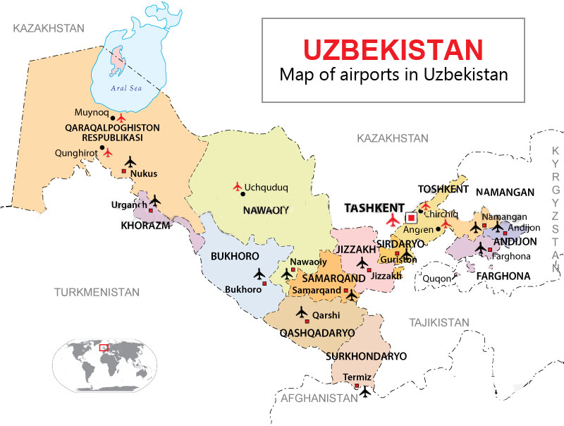 bản đồ uzbekistan Uzbekistan, một đất nước nằm khép kín ở Trung Á, nằm ở phía nam và phía đông nam của Biển Aral, giáp với Kazakhstan ở phía Tây và Đông Bắc, Turkmenistan ở phía Tây Nam, có đường biên giới ngắn (145 km) với Afghanistan ở phía Nam, giáp Tajikistan và Kyrgyzstan ở phía Đông. Uzbekistan […