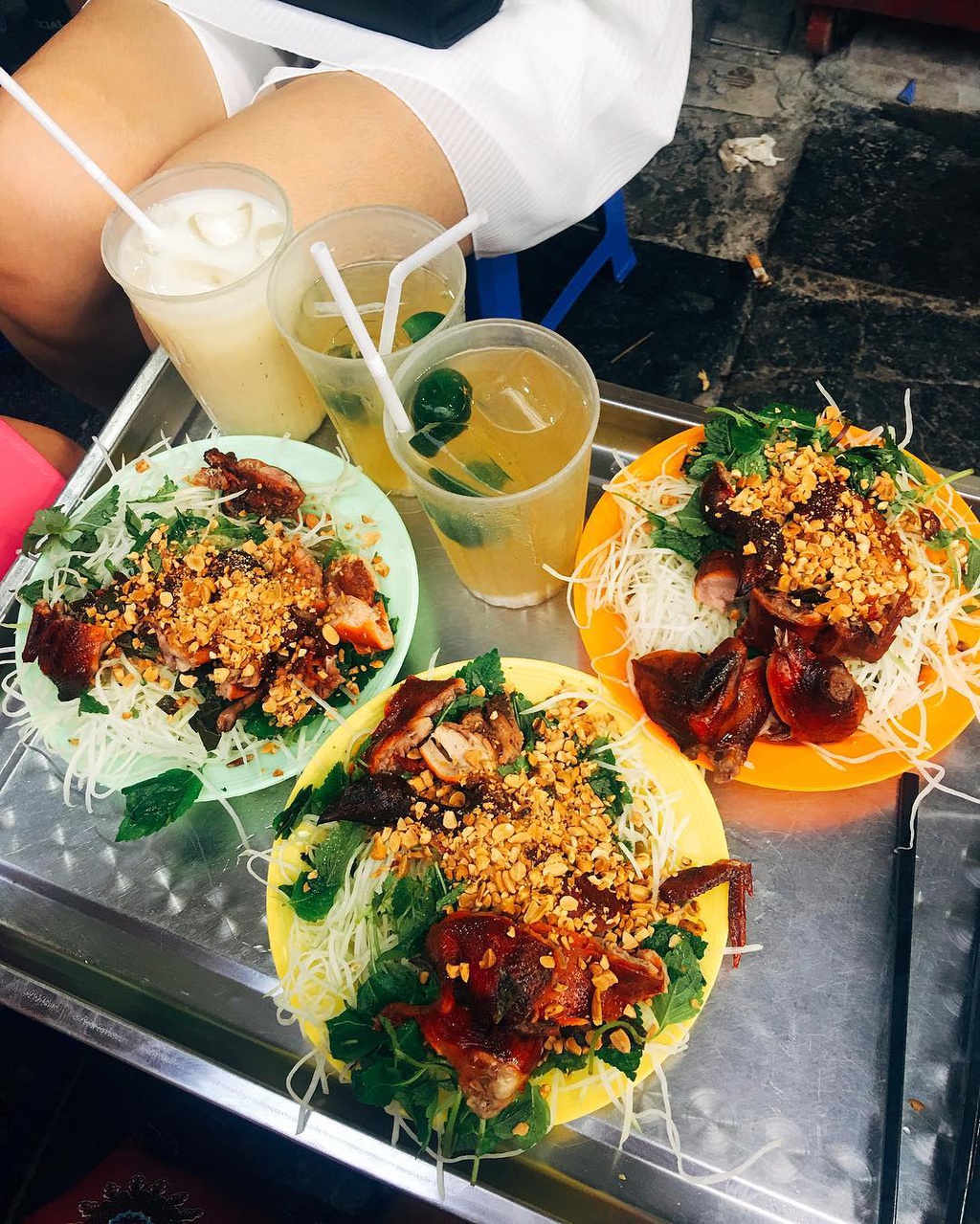 Nộm bò khô là một trong những món ăn vặt “quốc dân” được nhiều người yêu thích. Một suất nộm đầy đặn có đủ các loại topping như thịt bò khô, gan, lá lách, đu đủ nạo sợi… Khi thưởng thức, bạn trộn đều các loại nhân với nước sốt chua ngọt, thêm chút ớt cay cay là có một món lai rai hấp dẫn trong chiều hè nóng nực. Ảnh: _nymmm.