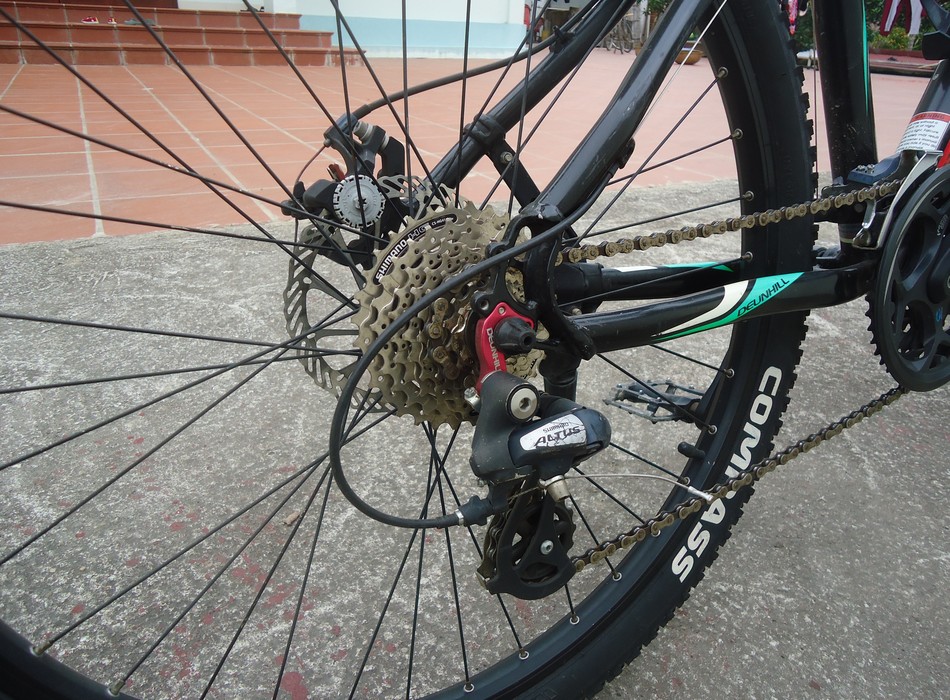 Đề trước,sau shimano Altus m310(24 speed) Tay bấm liền phanh cơ shimano v-brake Yên Velo plush Vành nhôm cao cấp Lốp Compass 26×1.95 Ghi …